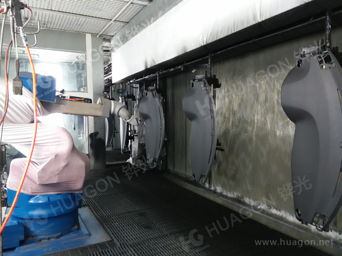 上料-配合多角度自轉(zhuǎn)換面-自動噴涂-下料