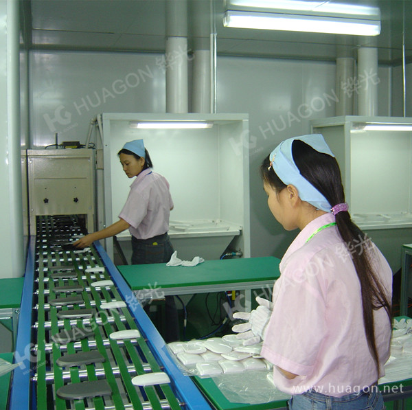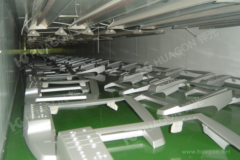 上料-手動靜電除塵-素材預熱-多任務站手動/自動噴涂-靜置-隧道式烘烤-冷卻-下料